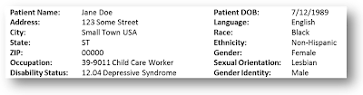 It’s anybody’s guess how long Ms. Doe will be able to keep her minimum wage janitorial job at the little church preschool, once her clinical summary gets circulated among neighborhood providers. The good news of course is that the IOM suggested research agenda on LGBT issues will be significantly advanced, which should eventually benefit Ms. Doe by shading light on disparities she is experiencing a bit more frequently than she expected. With a few more additions to the demographics recording section, perhaps in Stage 5 or 6, we could also save serious federal expenditures on the National Census which should become obsolete following full harmonization with a person’s EHR.