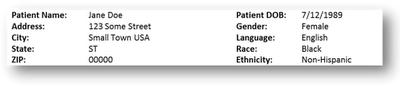 Stage 1 of Meaningful Use added language, race and ethnicity to the customary demographic information collected from patients, such as name, address, date of birth, gender, etc. Stage 2 proposes to add language, race and ethnicity to clinical summaries provided to patients or sent to other providers of care. So the patient header of a Stage 2 clinical summary might look something like this: