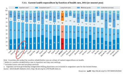 Number 6: No one, and I mean no one, spends less of their health care money on hospitals than the U.S. We are #1. And no one spends more than us on more efficient outpatient care, which includes inpatient physician services when billed separately. It seems that all those inflammatory articles in the media regarding hospital price gouging, are pure nonsense.