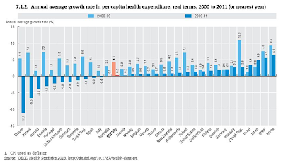 A couple of weeks ago Paul Krugman, winner of the 2008 Nobel Prize in Economics, and self-described liberal, let us in on a little secret. Obamacare, it seems, is the only logical explanation for the reduced growth of health care spending in the U.S., and Obamacare began “bending the curve” from the moment it was signed into law in 2010, long before it was formally implemented. Since according to OECD data, all other nations have experienced the same “curve bending” effect since 2010, we must conclude that Obamacare has reached all developed nations instantaneously (the Internet is very fast).
