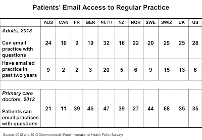 Number 8: Americans are making big strides in technology use for communicating with their doctors. We beat practically every single developed country at some email metric, which is irrefutable proof that Meaningful Use is working.